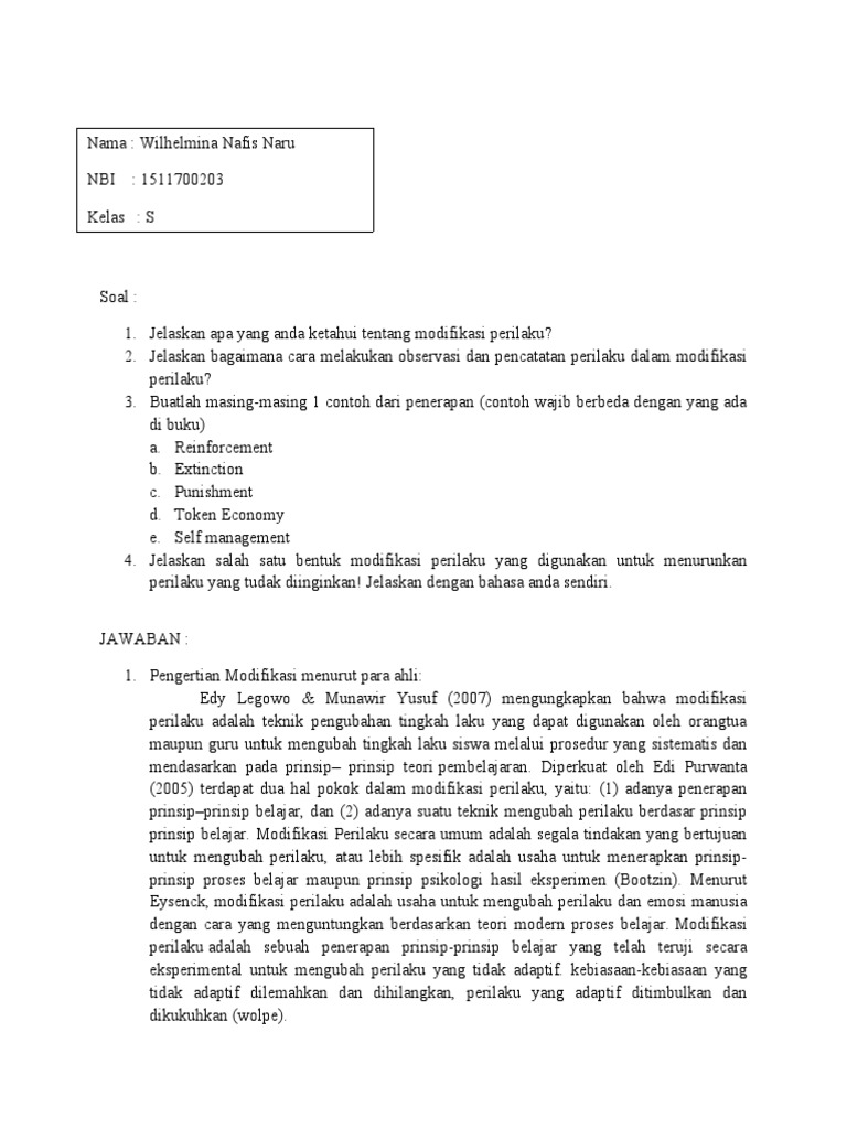 Puji dan syukur penulis panjtkan kehadirat Allah SWT karena berkat. Dalam modifikasi perilaku analisis terhadap perilaku yang akan diubah harus dilakukan menjadi perilaku yang tunggal rinci sehingga berbeda dengan perilaku yang lain. Berlaku bagi setiap orang tentang perilaku manusia.